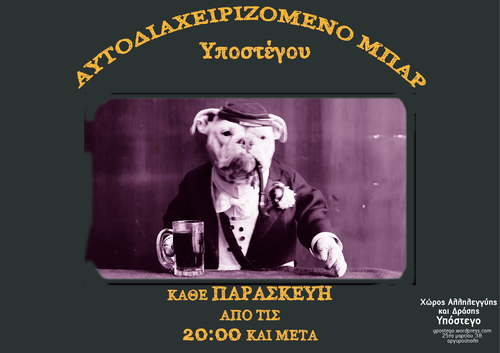 Τη Παρασκευή 15 Απριλίου αυτοδιαχειριζόμενο bar από τις 21 00 (από τους «Αλληλέγγυους Κρατουμένων στα Νότια» με μουσική, μπύρες και άραγμα στο Υπόστεγο και στον κήπο του (αν ο καιρός το επιτρέπει).