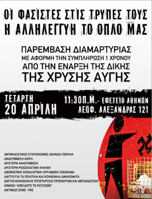 Αντιφασιστική Παρέμβαση για τον ένα χρόνο της δίκης της ΧΑ