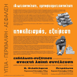 Ο αποκλεισμός από τους μηχανισμούς υγείας, περίθαλψης και ασφάλισης είναι ένα μόνο μέρος του πολέμου που έχει εξαπολυθεί ενάντια στην κοινωνία. Ένα κομμάτι του πολέμου όμως ιδιαίτερα σημαντικό, με άμεση αντανάκλαση στον αστικό χώρο. Το νοσοκομείο ως αποκομμένη αστική ζώνη, προορισμένη για τα εύπορα μόνο κομμάτια του πληθυσμού, γίνεται σημειακό πεδίο του γενικευμένου ταξικού πολέμου.
