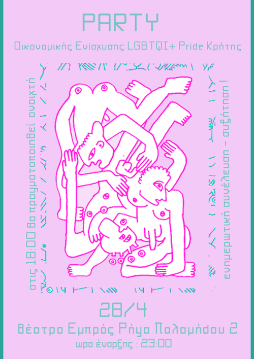 Παρά τη θεσμική ομοφοβία του Δημοτικού Συμβουλίου Ρεθύμνης το Φεστιβάλ Ορατότητας και Διεκδικήσεων για Απελευθέρωση Φύλου Σώματος και Σεξουαλικότητας: LGBTQI+ Pride Κρήτης θα διεξαχθεί για δεύτερη χρονιά, αυτή τη φορά στο Ρέθυμνο 9-10 Ιούλη. Ακόμη πιο δυναμικά, διεκδικούμε το δημόσιο χώρο, παλεύουμε ενάντια σε κάθε εξουσία που ασκείται πάνω μας , σε κάθε μορφή καταπίεσης , συνδεόμαστε ακόμη πιο στενά με κάθε δίκαιο κοινωνικό αγώνα και αγωνιζόμαστε για τις ζωές και την ελευθερία μας. Για δεύτερη συνεχή χρονιά, χωρίς χορηγούς και αιγίδες , αυτοχρηματοδοτούμενα και αυτοοργανωμένα , με μόνο μας έρεισμα και πηγή δύναμης την αλληλεγύη κάνουμε το Pride που μας αξίζει και μας χωρά όλ@ς ! Και στο ρέθυμνο και σε κάθε γωνιά της Κρήτης!