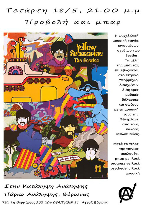 ΠΡΟΒΟΛΗ ΤΗΣ ΨΥΧΕΔΕΛΙΚΗΣ ΤΑΙΝΙΑΣ''YELLOW SUBMARINE-THE BEATLES'',ΘΑ ΑΚΟΛΟΥΘΗΣΕΙ ΜΠΑΡ ΟΙΚΟΝΟΜΙΚΗΣ ΕΝΙΣΧΥΣΗΣ ΜΕ PROGRESSIVE/PSYCHEDELIC ROCK ΕΠΙΛΟΓΕΣ!!!