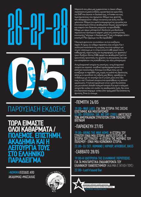 19.00> Εκδήλωση: Η ιδιοτροπία της ελληνικής περίπτωσης: Για τα μιλιταριστικά ενδιαφέροντα του ελληνικού πανεπιστημίου (και μια εξήγησή τους)