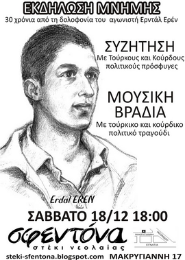 Εκδήλωση μνήμης για τα 30 χρόνια απο τη δολοφονία του Ερντάλ Ερέν