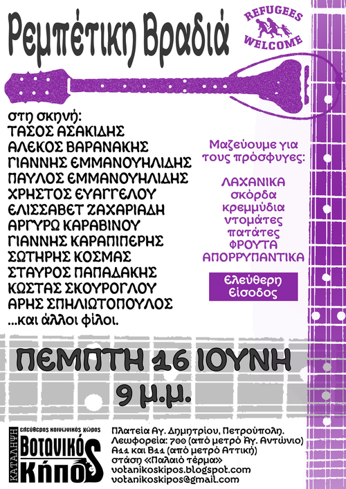 (Συλλέγουμε είδη πρώτης ανάγκης για τους πρόσφυγες που στεγάζονται στο Βοτανικό Κήπο)
