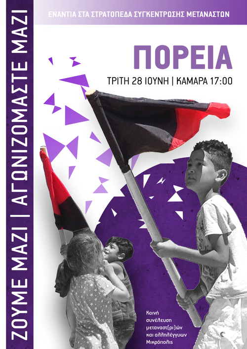 Εμπρός σύντροφοι, σε κοινούς αγώνες με πρόσφυγες και μετανάστες, ενάντια στο κράτος, τα σύνορα, τον πόλεμο, το κεφάλαιο και όλες τις μορφές του σύγχρονου ολοκληρωτισμού. Να σπάσουμε τον εγκλεισμό και τις εκτοπίσεις να φτιάξουμε σχέσεις αγώνα και αλληλεγγύης για μια ζωή με αξιοπρέπεια.