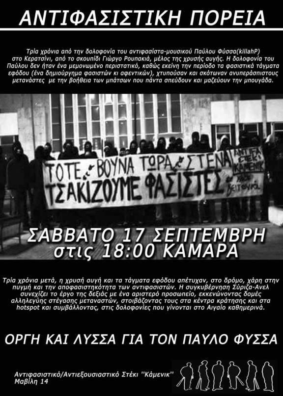 Συγκέντρωση-Πορεία για τη δολοφονία του Παύλου Φύσσα