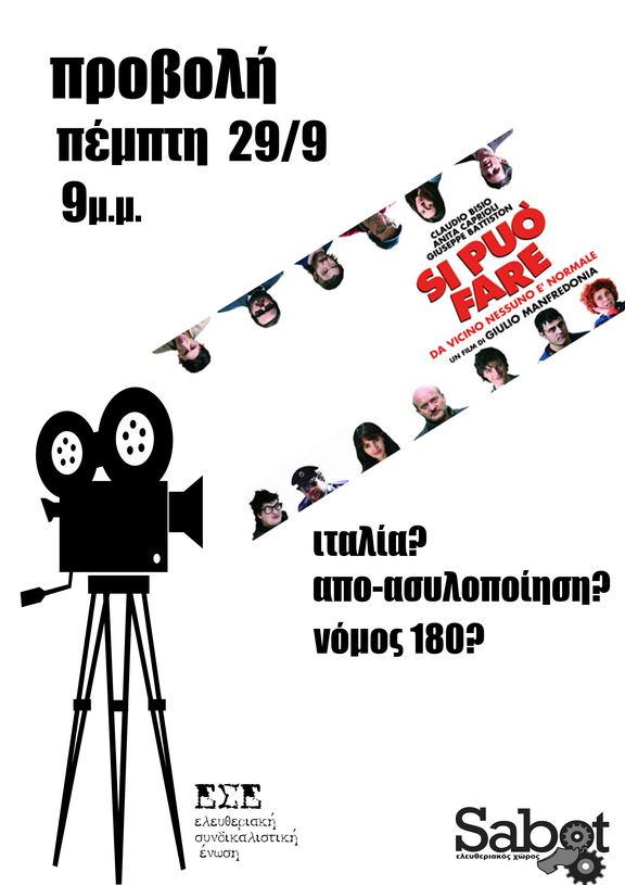 Προβολή της ταινίας "Si Puo Fare" & μπαρ οικονομικής ενίσχυσης του Sabot