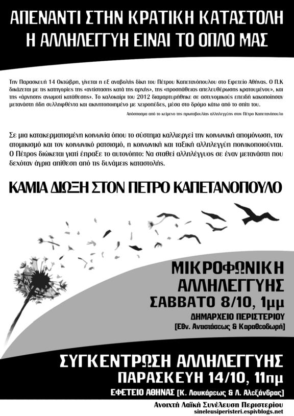 Μικροφωνική Αλληλεγγύης στον Πέτρο Καπετανόπουλο