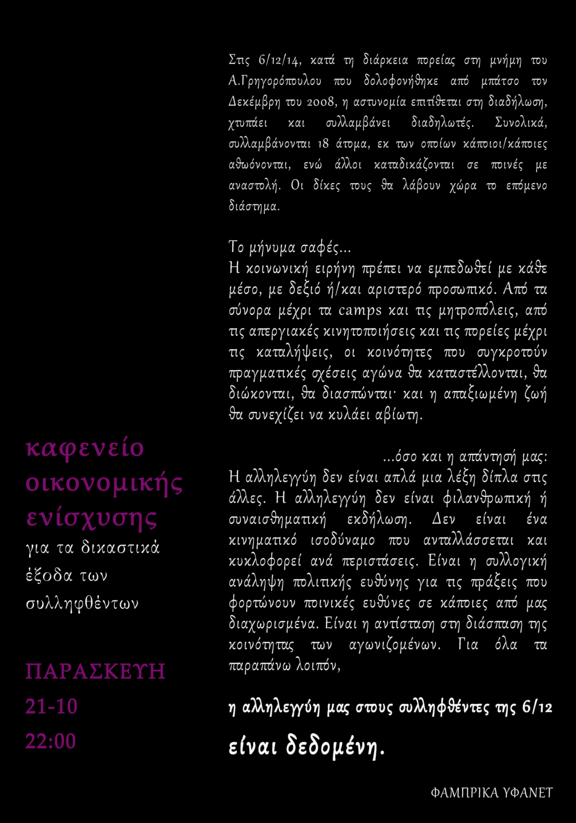 cafe bar οικ. ενίσχυσης για τους συλληφθέντες της 6/12/14