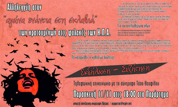 Εκδήλωση αλληλεγγύης στον αγώνα των κρατουμένων στις φυλακές των Η.Π.Α.