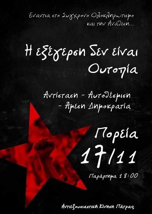 Αντιεξουσιαστικό μπλόκ για την πορεία στις 17 Νοεμβρίου