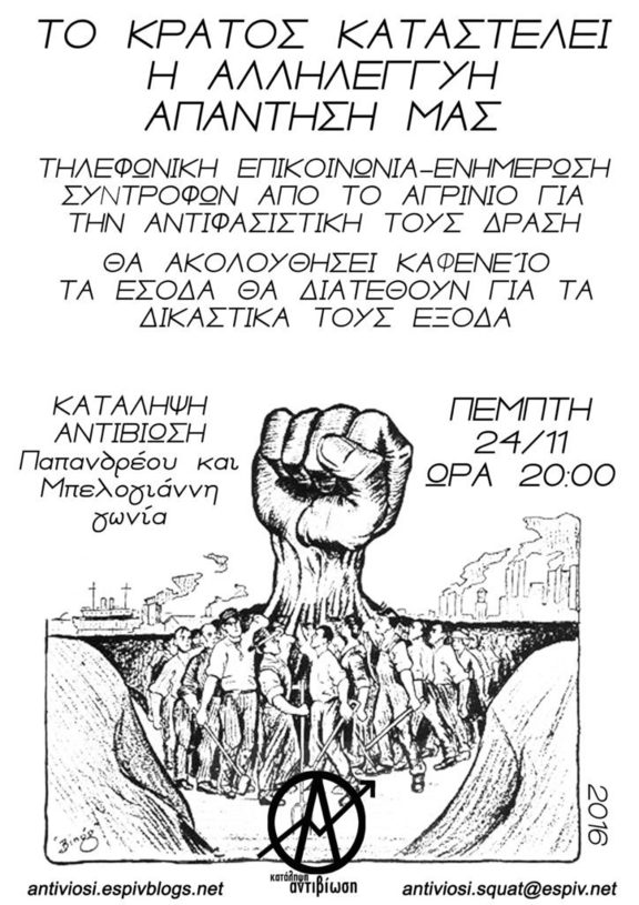 Καφενείο οικ. ενίσχυσης για δικαστικά έξοδα συντρόφων από το Αγρίνιο
