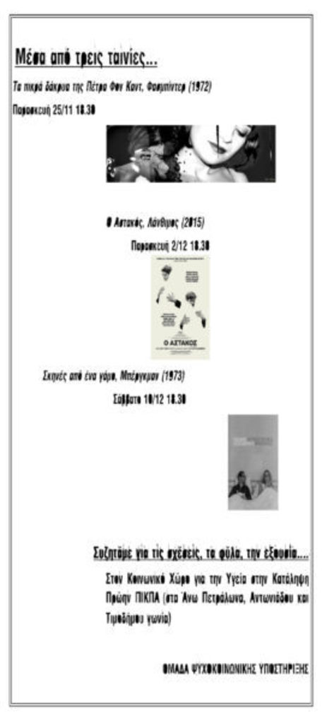 Προβολές και συζητήσεις από την ομάδα ΨχΚ