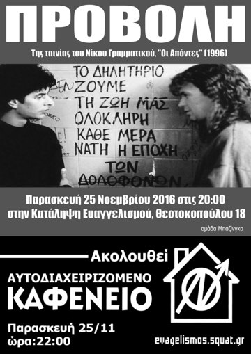 Μετά την προβολή θα ακολουθήσει καφενείο οικονομικής ενίσχυσης της Κατάληψης Ευαγγελισμού.