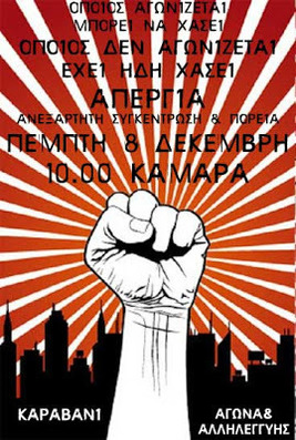 Ανεξάρτητη συγκέντρωση και πορεία από την ΚΑΜΑΡΑ, την ημέρα της απεργίας Πέμπτη 8/12 στις 10 το πρωί, με επιστροφή στην Καμάρα.