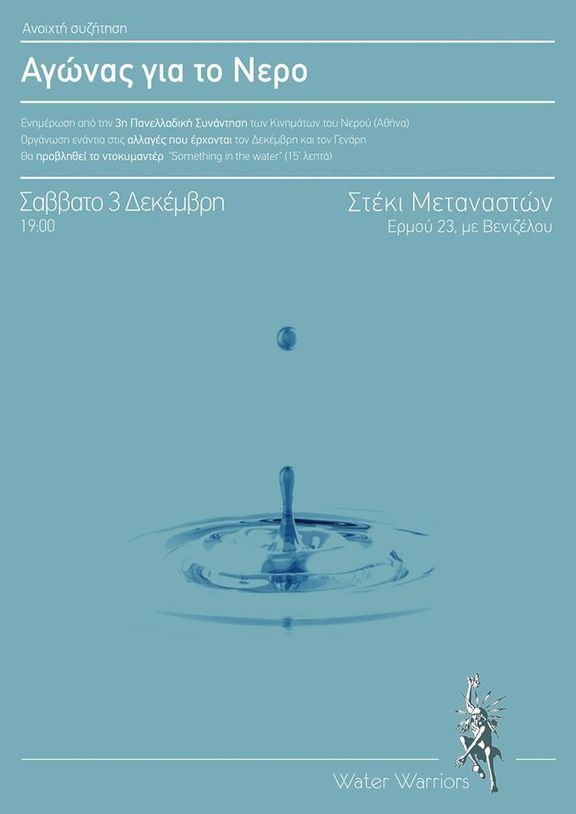 Θα οργανωθούμε ενάντια στις αλλαγές που έρχονται τον Δεκέμβρη και τον Γενάρη για το Νερό μας!