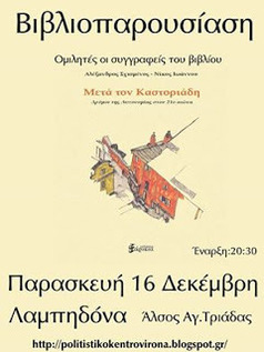 Το Κ.Π.Κ.Β σας προσκαλεί στη παρουσίαση του βιβλίου "Μετά τον Καστοριάδη: Δρόμοι της αυτονομίας στον 21ο αιώνα" των Αλέξανδρου Σχισμένου και Νίκου Ιωάννου, Παρασκευή, 16 Δεκέμβρη, 8.30 μ.μ. στη Λαμπηδόνα. Θα μιλήσουν οι συγγραφείς.