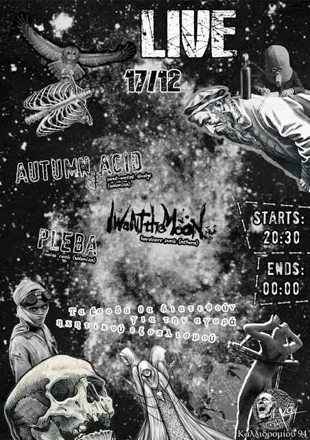 Το ερχόμενο Σάββατο 17 του Δεκέμβρη κατηφορίζουν από Σαλόνικα μεριά οι Autumn Acid και οι Pleba για να παίξουν παρέα με τους I Want The Moon από τα μέρη μας στο υπόγειο!