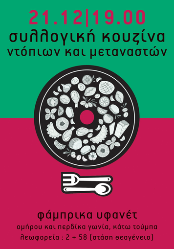 τι; : κουζίνα θεματική : συλλογική κουζίνα από : Φάμπρικα Υφανέτ, Μετανάστες/ριες