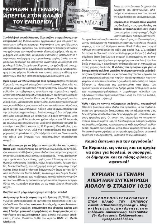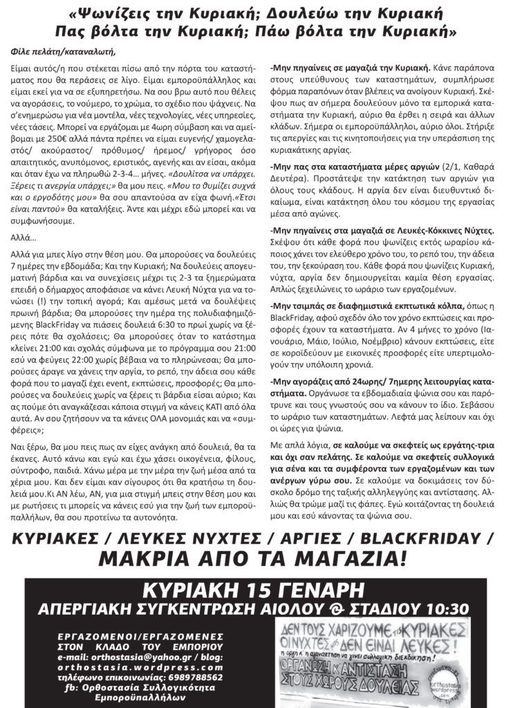 Κυριακή 15/1 :: Απεργία στον κλάδο του εμπορίου - Εργατική διαδήλωση: 10.30πμ, Χαυτεία (Σταδίου & Αιόλου)