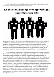 Θα χαρούμε πολύ να ενημερώσουμε με συζητήσεις και εκδηλώσεις όσους συλλόγους γονέων φοβούνται και αντιδρούν, δεν θα αφήσουμε, όμως, να διαδηλώνουν φωνές ρατσισμού και μίσους, υποκρινόμενες ότι προστατεύουν την υγεία όλων. Η κοινωνία μας, από την αρχή της προσφυγικής κρίσης, με κάθε αιτία και αφορμή, έδειξε την αλληλεγγύη της στους δοκιμαζόμενους πρόσφυγες. Έτσι θα γίνει και τώρα και μέσα στα σχολειά, που είναι τα κύτταρα της κοινωνίας.