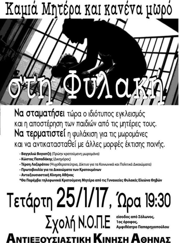 Εκδήλωση: Καμιά Μητέρα και Κανένα Μωρό στη Φυλακή