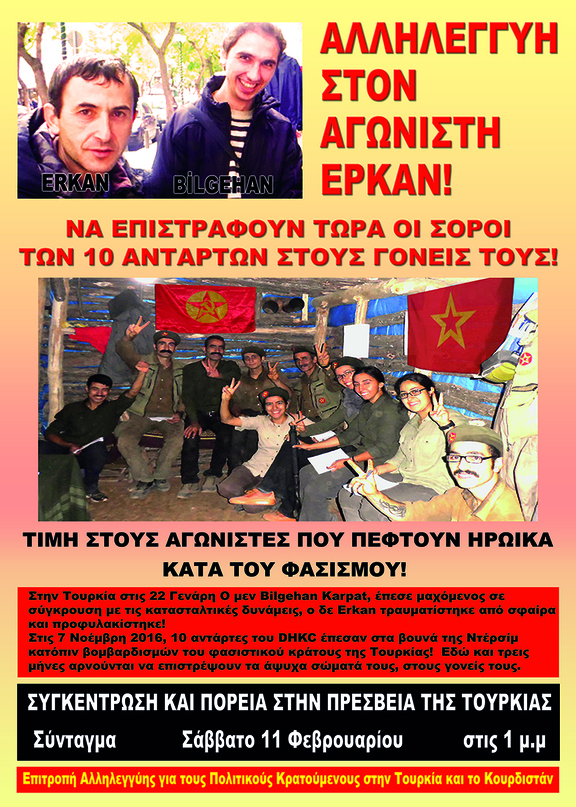 Αλληλεγγύη στον αγωνιστή Ερκάν και σε όλους τους Τούρκους και Κούρδους αγωνιστές!
