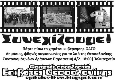 - Παρασκευή 4/2 6:00μμ Πολυτεχνείο, συντονισμός δράσεων των Φοιτητών-Επιβατών