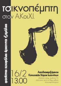 Αυτοδιαχειριζόμενος Κοινωνικός Χώρος Ιωαννίνων ( ΑΚΟΙΧΙ ) Πλατεία Νεομάρτυρος Ιωάννη 5 (κάτω από το δημοτικό ωδείο)