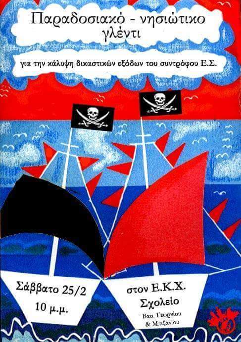 Το Σάββατο 25/2 στις 22:00 θα γίνει στον ΕΚΧ Σχολείο παραδοσιακό-νησιώτικο γλέντι για την κάλυψη δικαστικών εξόδων του Ε. Σ.