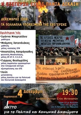 Παρασκευή, 4 Δεκέμβρη, 19:30, Κοινωνικό Κέντρο-Στέκι Μεταναστών, Ερμού 23 & Βενιζέλου (πάνω από το μνημείο για τη δολοφονία του Λαμπράκη).