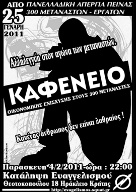 Αυτοδιαχειριζόμενο καφενειο οικονομικης ενισχυσης στους 300 μεταναστες απεργους πεινας. Αλληλεγγυη στον αγωνα των μεταναστων- Κανενας ανθρωπος δεν ειναι λαθραιος !