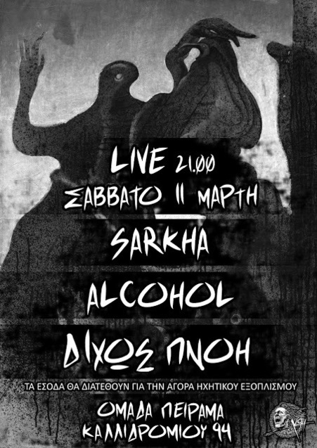 Το Σάββατο 11 Μαρτίου περιμένουμε, στο ακόμα δροσερό υπόγειο, τους Alcohol με alternative/grunge/psy rock ήχους, τους Sarkha για crust καταστάσεις και τους Δίχως Πνοή ξανά γιατί δεν τους χορτάσαμε την προηγούμενη φορά!