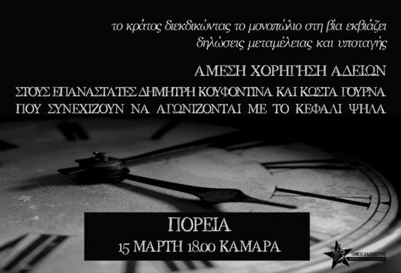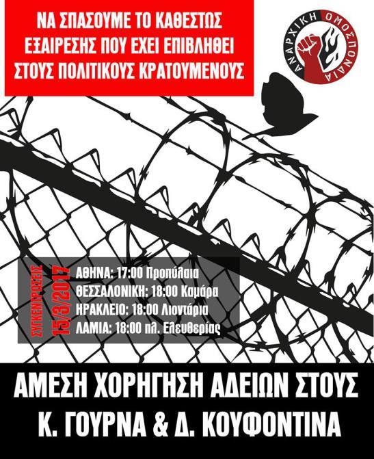ΑΜΕΣΗ ΧΟΡΗΓΗΣΗ ΑΔΕΙΩΝ ΣΤΟΝ ΑΝΑΡΧΙΚΟ ΚΩΣΤΑ ΓΟΥΡΝΑ ΚΑΙ ΤΟΝ ΚΟΜΜΟΥΝΙΣΤΗ ΔΗΜΗΤΡΗ ΚΟΥΦΟΝΤΙΝΑ