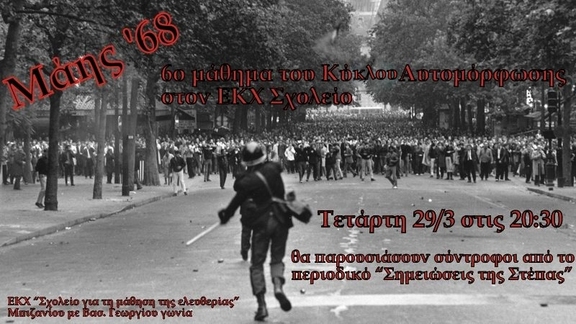 6ο Μάθημα του Κύκλου Αυτομόρφωσης με θέμα τον "Μάη του '68"