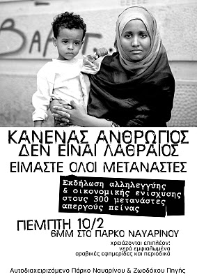 Εκδήλωση αλληλεγγύης στους 300 απεργούς μετανάστες