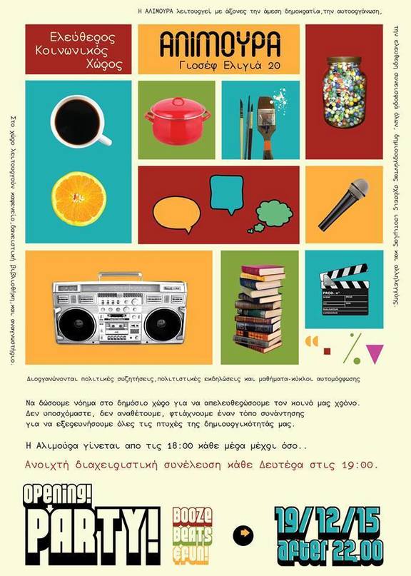 Ελεύθερος Κοινωνικός Χώρος "Αλιμούρα" Αραβαντινού 6 (εντός στοάς Σκόρδου) είσοδος και από Τσιριγώτη 14