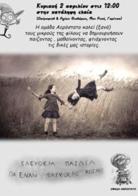 Kυριακή 2 Απριλίου στις 12.00 η ομάδα" Αερόστατο" καλεί τους μικρούς της φίλους να δημιουργήσουν παίζοντας , μαθαίνοντας, φτιάχνοντας τις δικές τους ιστορίες