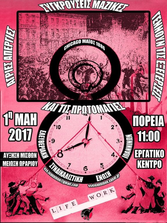 Δευτέρα 1η Μαΐου 2017. Απεργιακή συγκέντρωση και πορεία στις 10:30 στο εργατικό κέντρο.