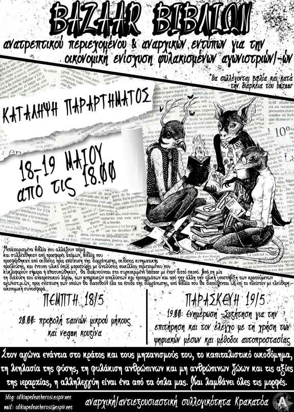 Bazaar βιβλίων ανατρεπτικού περιεχομένου & αναρχικών εντύπων για την οικονομική ενίσχυση φυλακισμένων αγωνιστριών/-ών