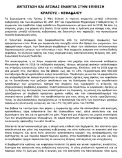 Η ολομέτωπη επίθεση του κράτους και των αφεντικών και η διαρκής επιβολή νέων επαχθέστερων όρων εκμετάλλευσης και καταπίεσης εκφράζουν την συνολική διαδικασία βίαιης αναδιάρθρωσης του κρατικού και καπιταλιστικού τρόπου οργάνωσης της κοινωνίας. Η σημερινή πολιτική διαχείριση, πλήρως ευθυγραμμισμένη με τις επιδιώξεις του ντόπιου και διεθνούς κεφαλαίου, την πολιτική της Ε.Ε. και των προηγούμενων κυβερνήσεων, θέτει σε εφαρμογή ένα νέο γύρω λεηλασίας απέναντι στην κοινωνία με όρους ακόμα πιο επαχθείς και σκληρότερους από το παρελθόν αφού τα μέτρα που προέκυψαν από το "κλείσιμο της αξιολόγησης" κατέληξαν στην υπογραφή ενός νέου μνημονίου και έρχονται να προστεθούν στα ερείπια που έχουν αφήσει πίσω τους τα τρία προηγούμενα μνημόνια.