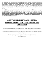 ΓΕΝΙΚΗ ΑΠΕΡΓΙΑ ΤΕΤΑΡΤΗ 17 ΜΑΗ, 10:30 π.μ., ΠΑΡΑΡΤΗΜΑ