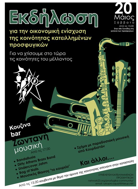 Εκδήλωση για την οικονομική ενίσχυση της κοινότητας των κατειλημμένων προσφυγικών το Σάββατο 20 μαίου.