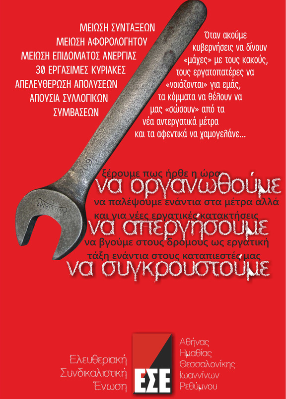 Ακόμα, η κυβέρνηση της «αριστεράς», που ευαγγελιζόταν την επικράτηση της «δημοκρατικής νομιμότητας» και κατήγγειλε την αντισυνταγματικότητα των προηγούμενων μνημονίων, έρχεται αυτήν την φορά, εναρμονισμένη με τους δεξιούς προκατόχους της όχι μόνο να επιβάλει τον μονόδρομο της εκμετάλλευσης και της καταπίεσης, αλλά να νομοθετήσει μέτρα και πέραν της τετραετίας που είναι εκλεγμένη, τα οποία προστίθενται τελικά σωρευτικά στη λίστα των μέτρων που έχουν επιβληθεί στους καταπιεσμένους, θέτοντας ακόμα χειρότερους όρους στην επιβίωση των από τα κάτω, εξυπηρετώντας δουλικά τα συμφέροντα του κεφαλαιοκρατικού συστήματος, του οποίου συνιστούν αναπόσπαστο κομμάτι. Ο νέος μεσαίωνας βαπτίζεται για άλλη μια φορά «ανάπτυξη» και «εκσυγχρονισμός» στη «νέα γλώσσα» του σύγχρονου ολοκληρωτισμού. Μπαίνουμε σε μια νέα περίοδο ρευστότητας σε πολλαπλά επίπεδα και αυτή θα πρέπει να εκκινήσει με πυξίδα τη μαζικοποίηση και την ενδυνάμωση των κοινωνικών και ταξικών αντιστάσεων, ώστε να ανατραπούν τα οικονομικά και κατασταλτικά σχέδια κράτους και κεφαλαίου. Γι' αυτό, αν και γνωρίζουμε πολύ καλά, το σημαντικό κόστος που έχει για τους εργαζόμενους η απώλεια έστω και ενός μεροκάματου, θεωρούμε ότι είναι η ώρα οι εκμεταλλευόμενοι και οι καταπιεσμένοι να βγουν ξανά δυναμικά στους δρόμους. Το μεροκάματο της 17ης Μάη δεν θα είναι χαμένο μόνο αν μπορέσουμε όλοι μαζί να ανασυγκροτήσουμε τις ταξικές αντιστάσεις, να βάλουμε φραγμό στα σχέδια κυβέρνησης, κράτος και κεφαλαίου και να οργανώσουμε την κοινωνική αυτοάμυνα & αντεπίθεση.