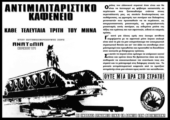 Αντιμιλιταριστικό καφενείο κάθε τελευταία τρίτη του μήνα απ'το ΠΡΟΤΖΕΚΤ ΑΝΤΙΜΙΛΙΤΕΡ