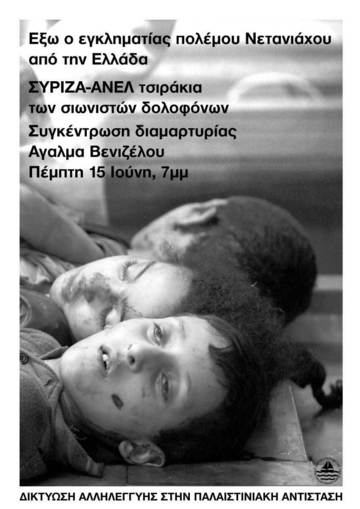 Καλούμε για αυτό διαδηλώσεις την Πέμπτη, 15/6 στις 19.00 στο Άγαλμα Βενιζέλου και στην Αθήνα έξω απ την πρεσβεία του Ισραήλ:.