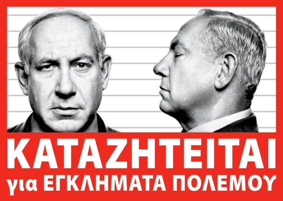 Ανταποκρινόμενοι και στην έκκληση του Λαϊκού Μετώπου για την Απελευθέρωση της Παλαιστίνης (PFLP), δηλώνουμε πως είναι ανεπιθύμητος στη χώρα μας ο επικεφαλής του κατοχικού κράτους Νετανιάχου. Άλλωστε, αν λειτουργούσε στ' αλήθεια η λεγόμενη «διεθνής νομιμότητα», ο συγκεκριμένος θα έπρεπε να βρίσκεται στη φυλακή, όντας κι ο ίδιος προσωπικά εγκληματίας πολέμου.