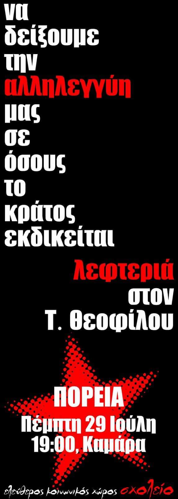 Αλληλεγγύη στον σύντροφο Τάσο Θεοφίλου