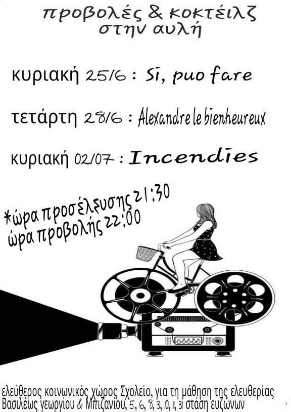 Καλοκαιρινές προβολές με κοκτέιλζ στην αυλή του Σχολείου
