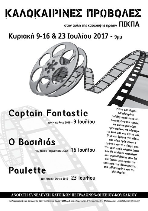 Καλοκαιρινές προβολές στην αυλή της κατάληψης πρώην ΠΙΚΠΑ τις Κυριακές 9-16 & 23 Ιουλίου 2017, στις 9μμ.